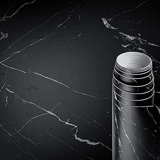Awnic Klebefolie Marmor Möbelfolie Marmoroptik Folie Selbstklebend Schwarz Möbelfolie Mamorfolie Selbstklebend Dekorfolie Fensterbank Küchenarbeitsplatte Schrankfolien Wasserfest 500x60cm