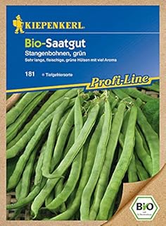 Kiepenkerl Saatgut, BIO Stangenbohnen Neckarkönigin, Inhalt reicht für ca.: 6-8 Stangen, hoher Ertrag bringt runde und fadenfreien Hülsen (bis 28cm länge)