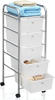 Seville Classics Rollwagen mit 6 tiefen Schubladen, 39.5 x 39 x 98 cm (LxBxH), Weiß Schubladenwagen, Metall