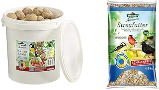 Dehner Natura Wildvogelfutter, Insekten-Knödel, ohne Netz, 100 Stück (10 kg) & Natura Wildvogelfutter, schalenfreies Streufutter, 5 kg