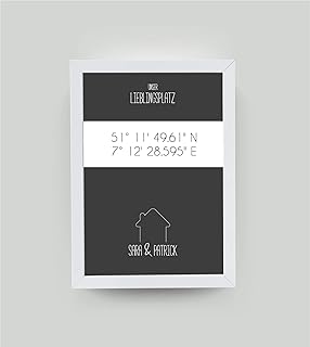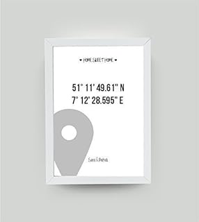 personalisiertes Bild"HOME SWEET HOME GPS" mit Rahmen, Geschenk zum Umzug, Geschenk zum Einzug, tolles Einzugsgeschenk, Umzugsgeschenk, Einweihungsgeschenk
