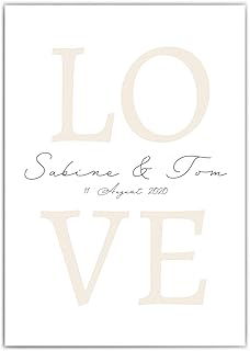 Personalisiertes Poster Liebe - Din A4 | 30x40 cm – Namen & Datum personalisiertes Bild - Personalisiertes Geschenk Hochzeit - Bild für Paare - LOVE - ohne Bilderrahmen