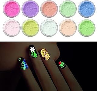 Bulary Nagelpulver, 10 Farben, leuchtet im Dunkeln, fluoreszierend, Glitzerpulver für die Nagelspitzen, Neon-Pigment, Nageldesign