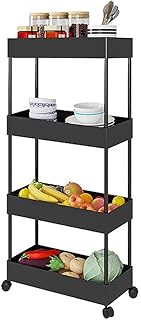 kramow Küchenwagen auf Rollen,Rollwage Kosmetik, Rollwagen mit 4 Ebenen,Lagerregal, Aufbewahrungswagen,Nischenregal auf Rollen für Schlafzimmer, Wohnzimmer, Studio, Bad, Küche, Büro, Schwarz