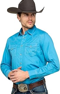 Herren Retro Two Pocket Long Sleeve Snap Shirt Button-Down Hemd